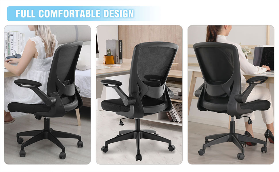 Amazon Com Ergonomic Office Chair Kerdom Breathable Mesh Desk Chair Lumbar Support Computer Chair With Wheels And Flip Up Arms Swivel Task Chair Adjustable Height Home Gaming Chair Home Kitchen